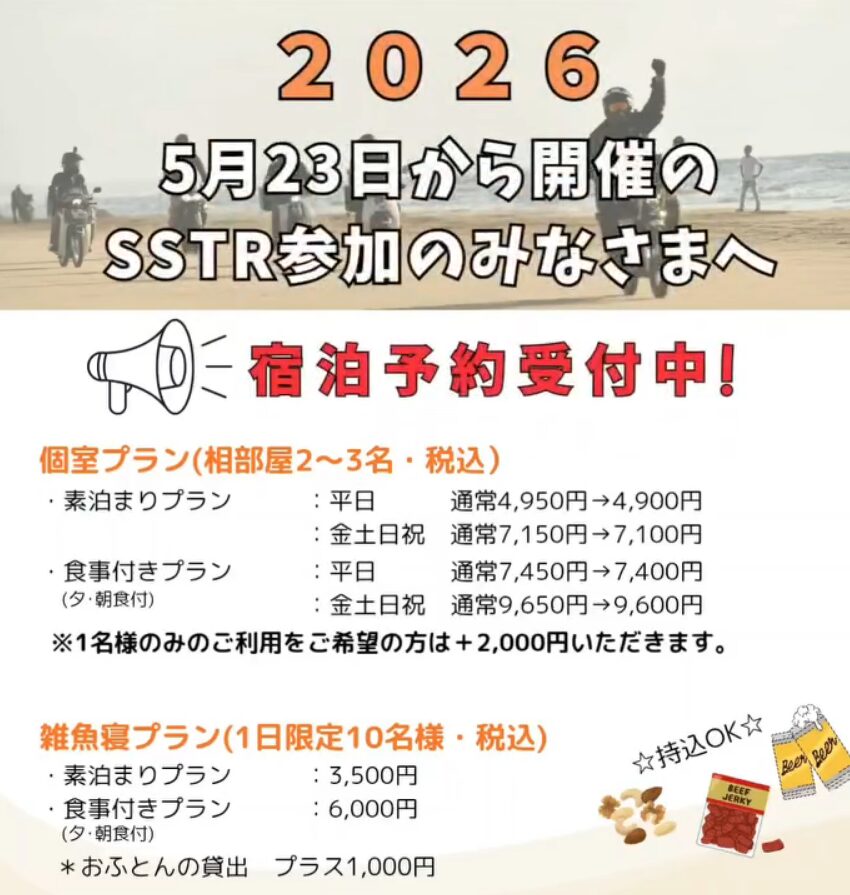 ✅SSTR2026期間中の宝達志水町内の宿泊状況です
